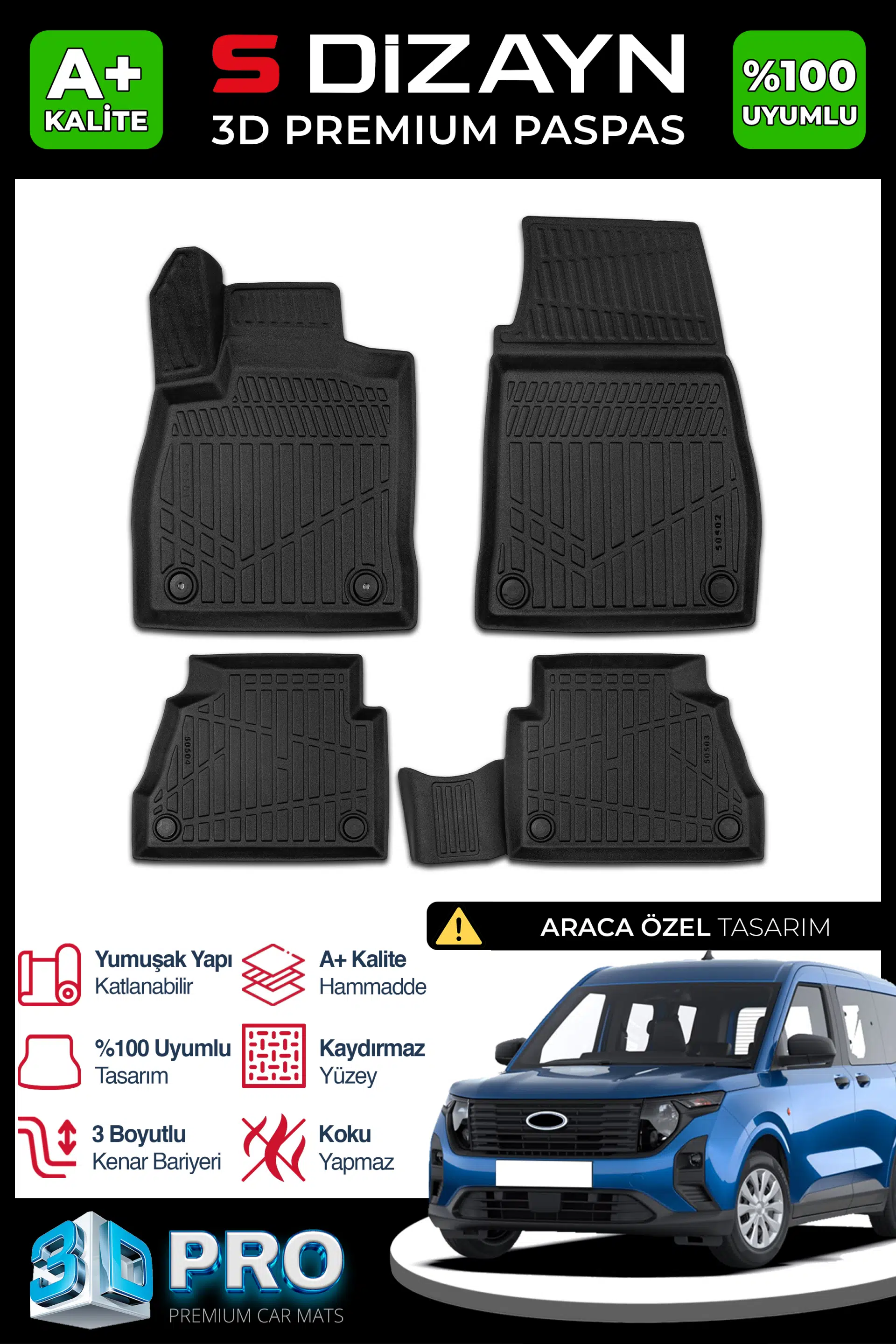 "3D Havuzlu Paspas," her araç modeli için özel olarak ölçülendirilmiş ve tasarlanmıştır. Bu sayede, aracınızın zeminine tam uyum sağlar, boşluk bırakmaz ve kaymadan güvenli bir kullanım sunar.