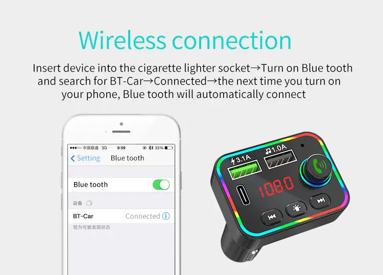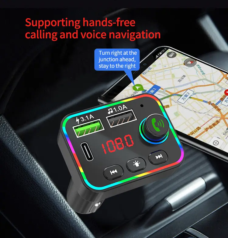 Fonksiyon: FM verici harici mikrofon çift USB PD tipi C hızlı araba şarjı Şarj cihazı Bluetooth uyumlu 5.0 eller serbest araç FM modülatörünü destekler.