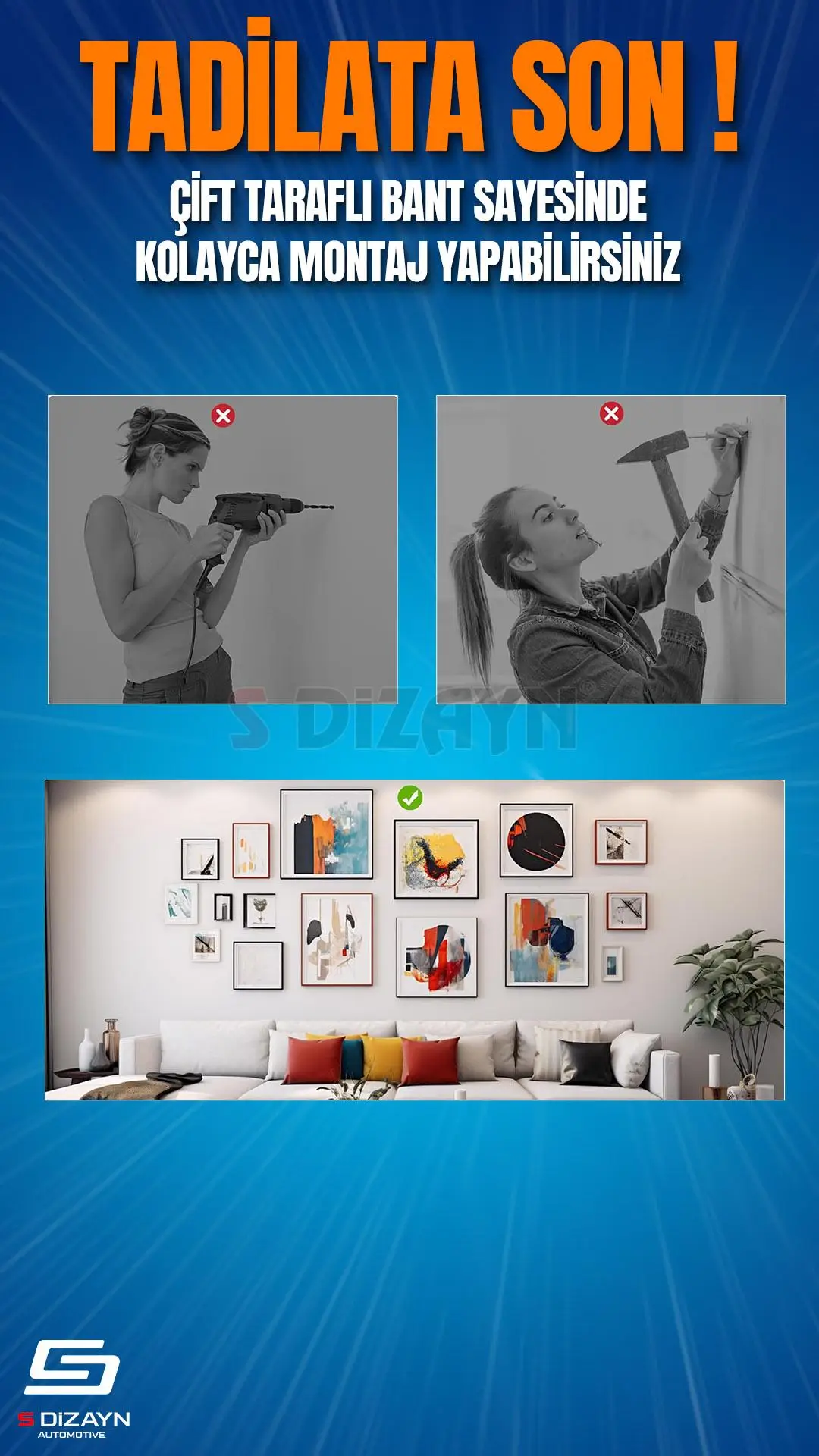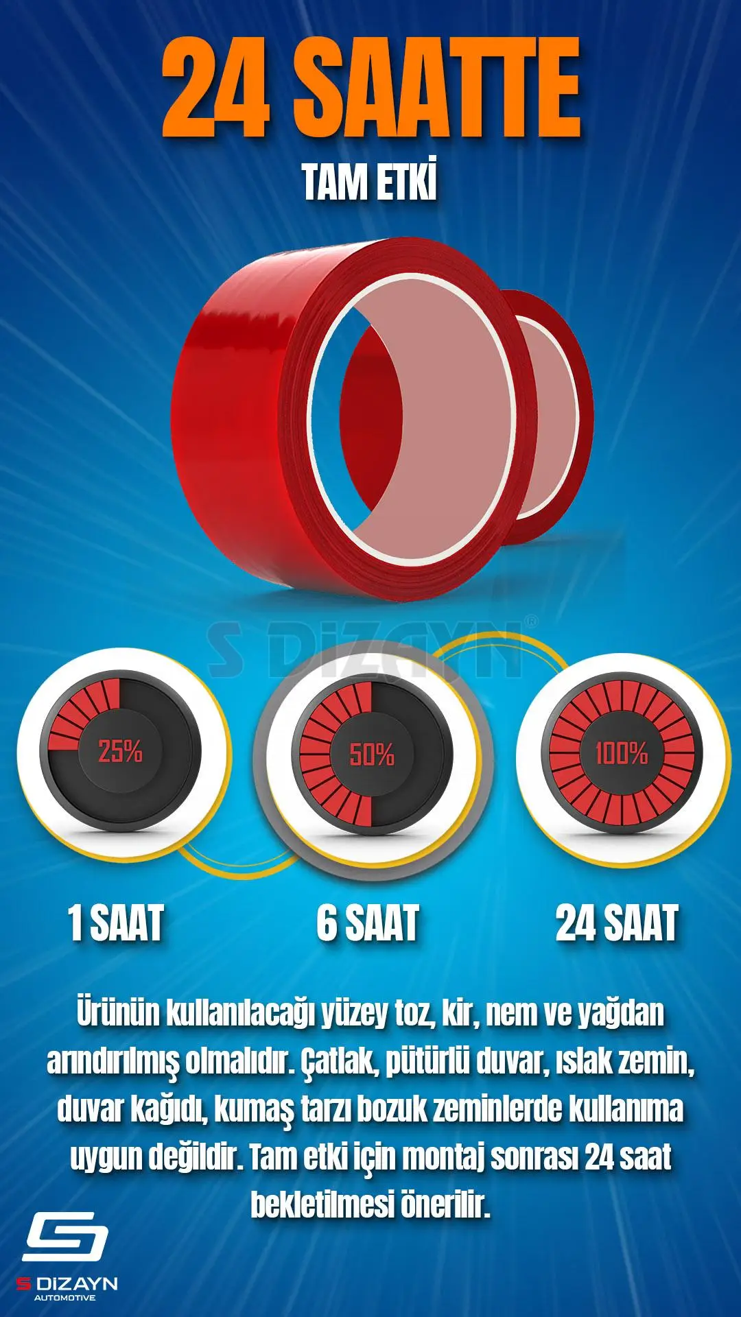 • Montajı yapılacak yüzey toz, kir, nem ve yağdan arındırılmış olmalıdır.