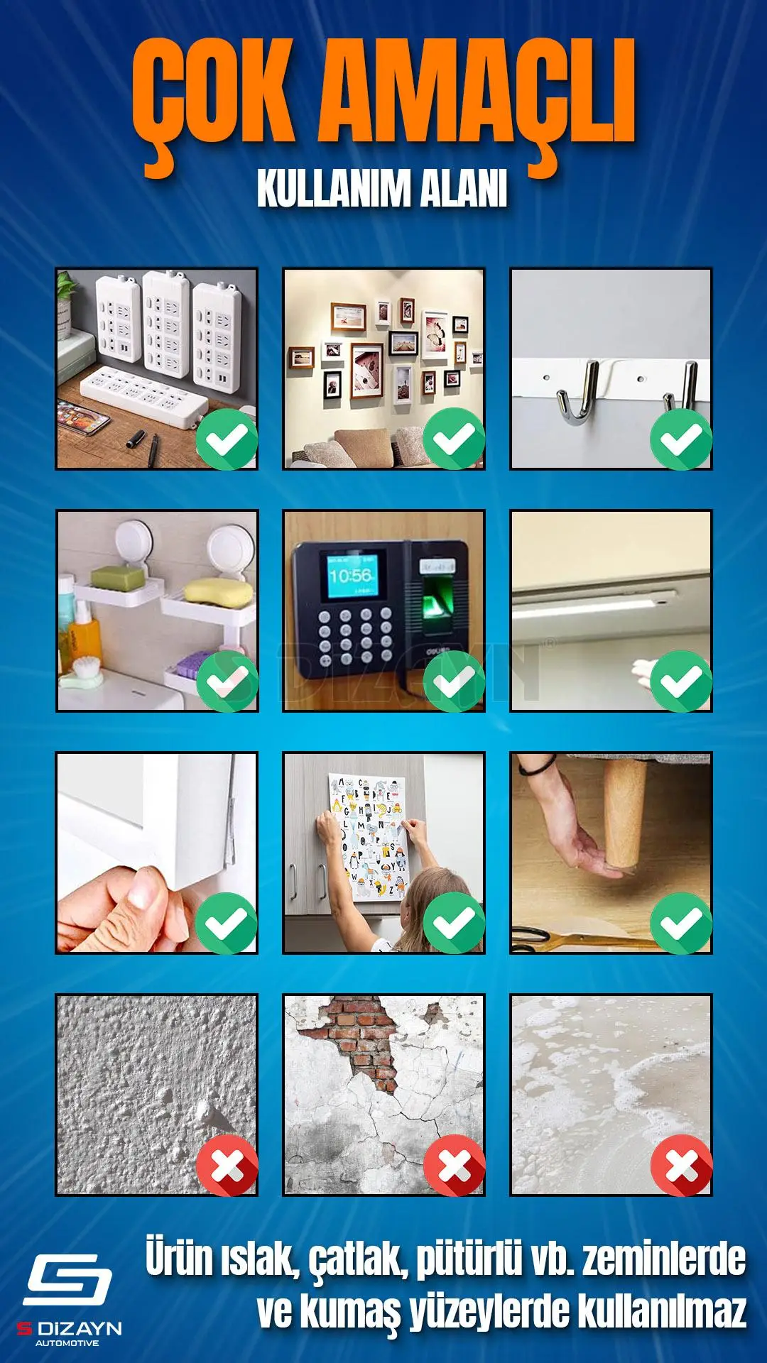 • Her alanda kullanılabilecek şekilde üretilmiştir. Üstün ve hızlı yapışma ve tutunum özelliği sayesinde istediğiniz yüzeyleri saniyeler içinde yapıştırabilirsiniz. Çift taraflı bant ile artık vidalama ve delme işlemi yapmanıza gerek kalmaz.