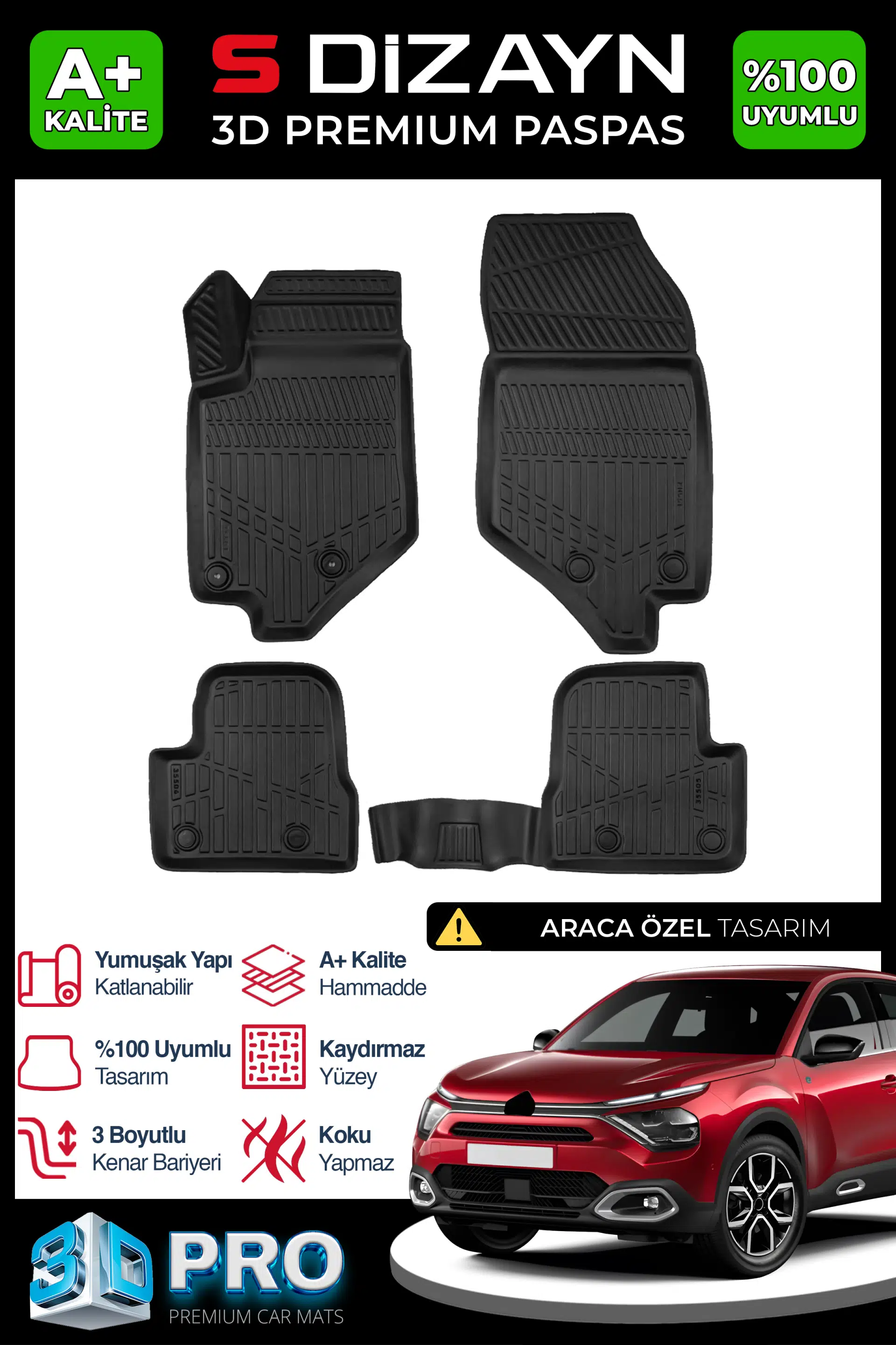 | Etiketler | S-Dizayn Citroen C4X 3D Pro Havuzlu Paspas 2022 Üzeri A+ Kalite |