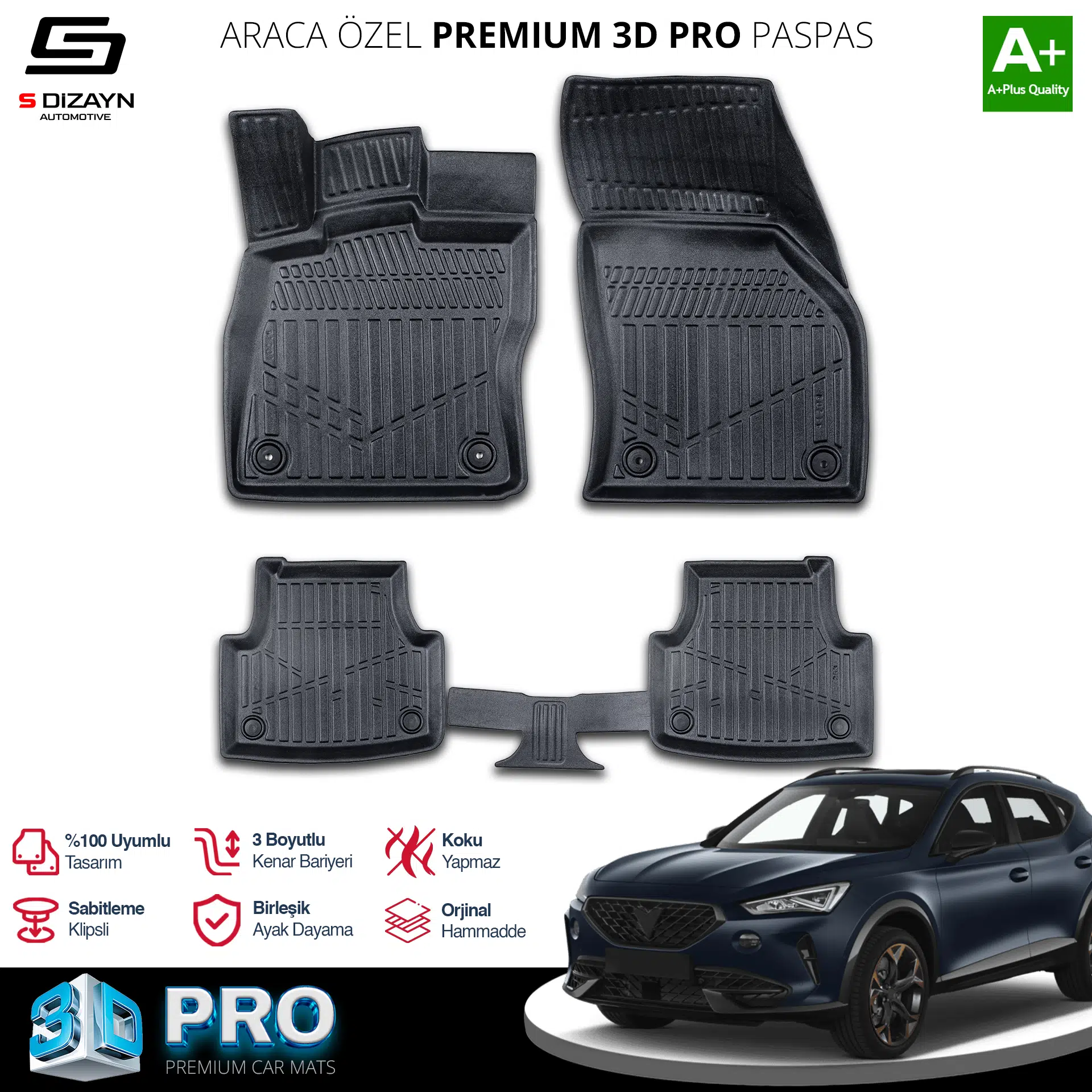 | Etiketler | S-Dizayn Cupra Formentor 3D Pro Havuzlu Paspas 2021 Üzeri A+ Kalite |