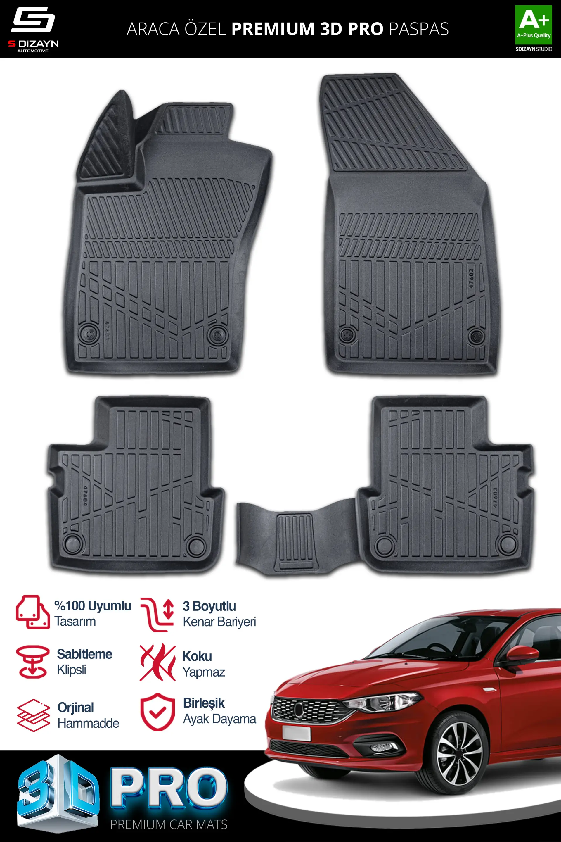 | Etiketler | S-Dizayn Fiat Egea Sedan 3D Pro Havuzlu Paspas 2015-2020 A+ Kalite |