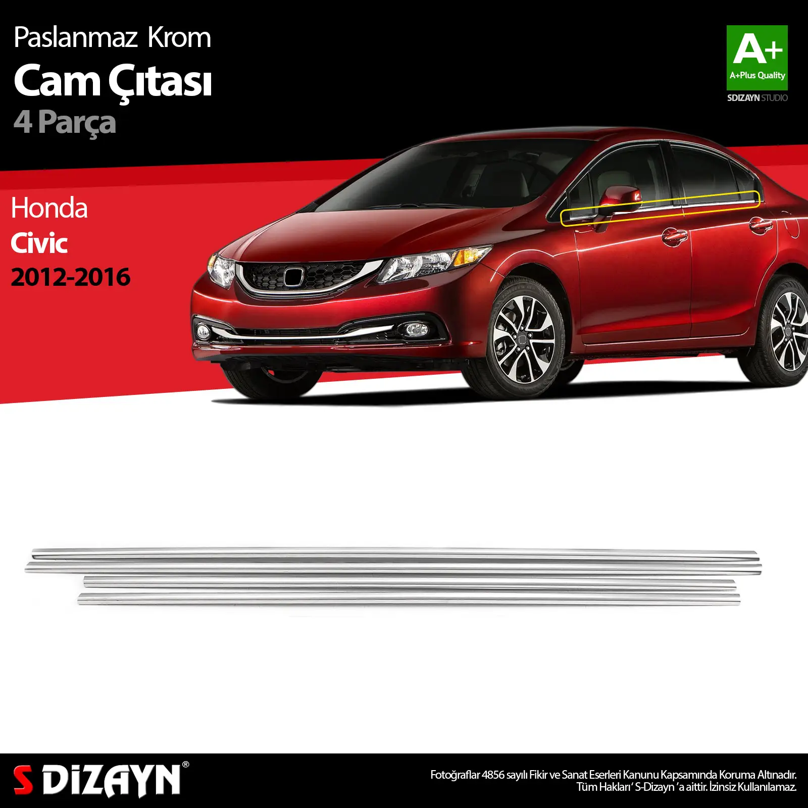 Etiketler | S-Dizayn Honda Civic Krom Cam Çıtası 4 Prç 2012-2016 |