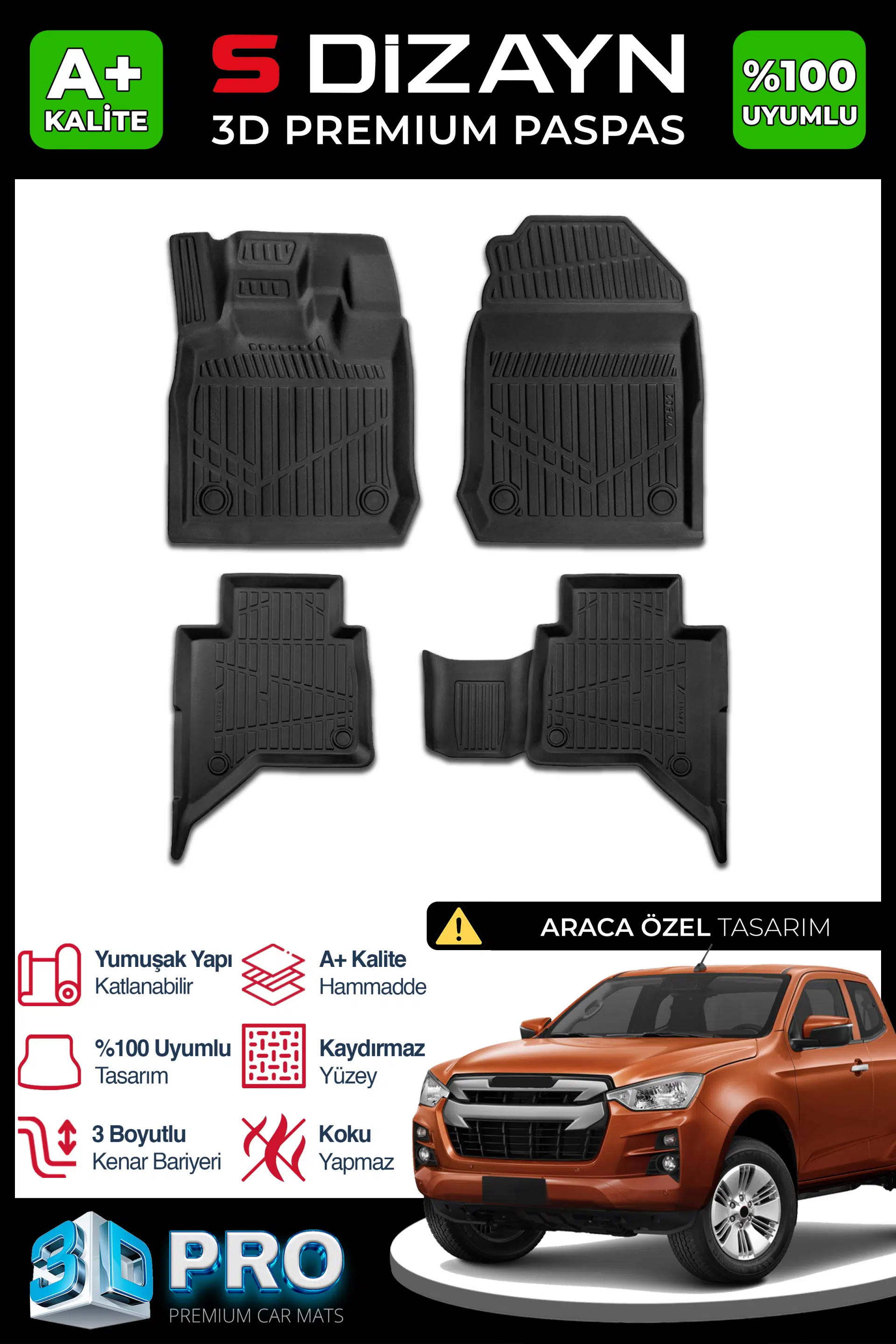 | Etiketler | S-Dizayn Isuzu D-Max 3D Pro Havuzlu Paspas 2019 Üzeri A+ Kalite |