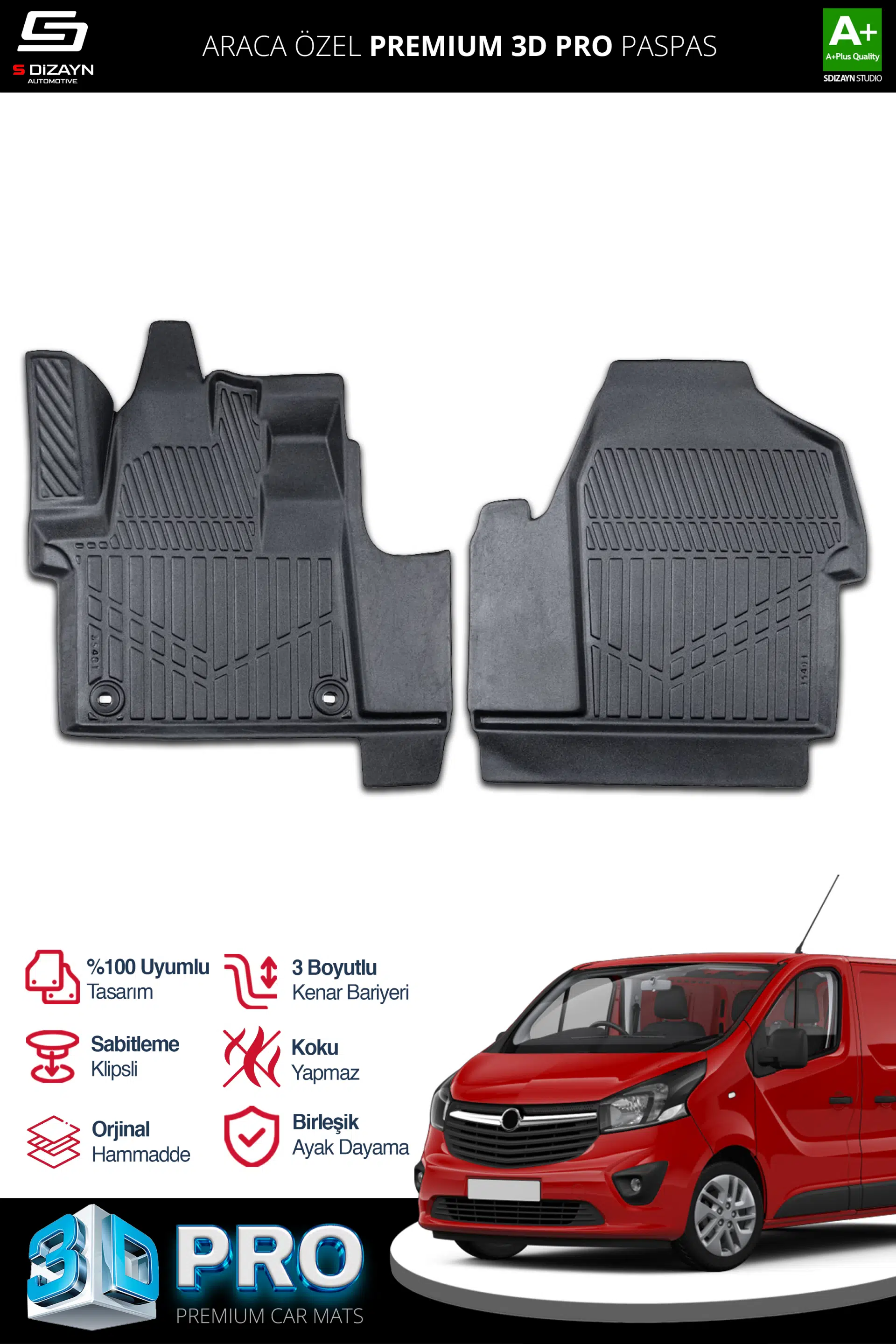 | Etiketler | S-Dizayn Opel Vivaro Panelvan 3D Pro Havuzlu Paspas Ön 2'Li 2019 Üzeri A+ Kalite |