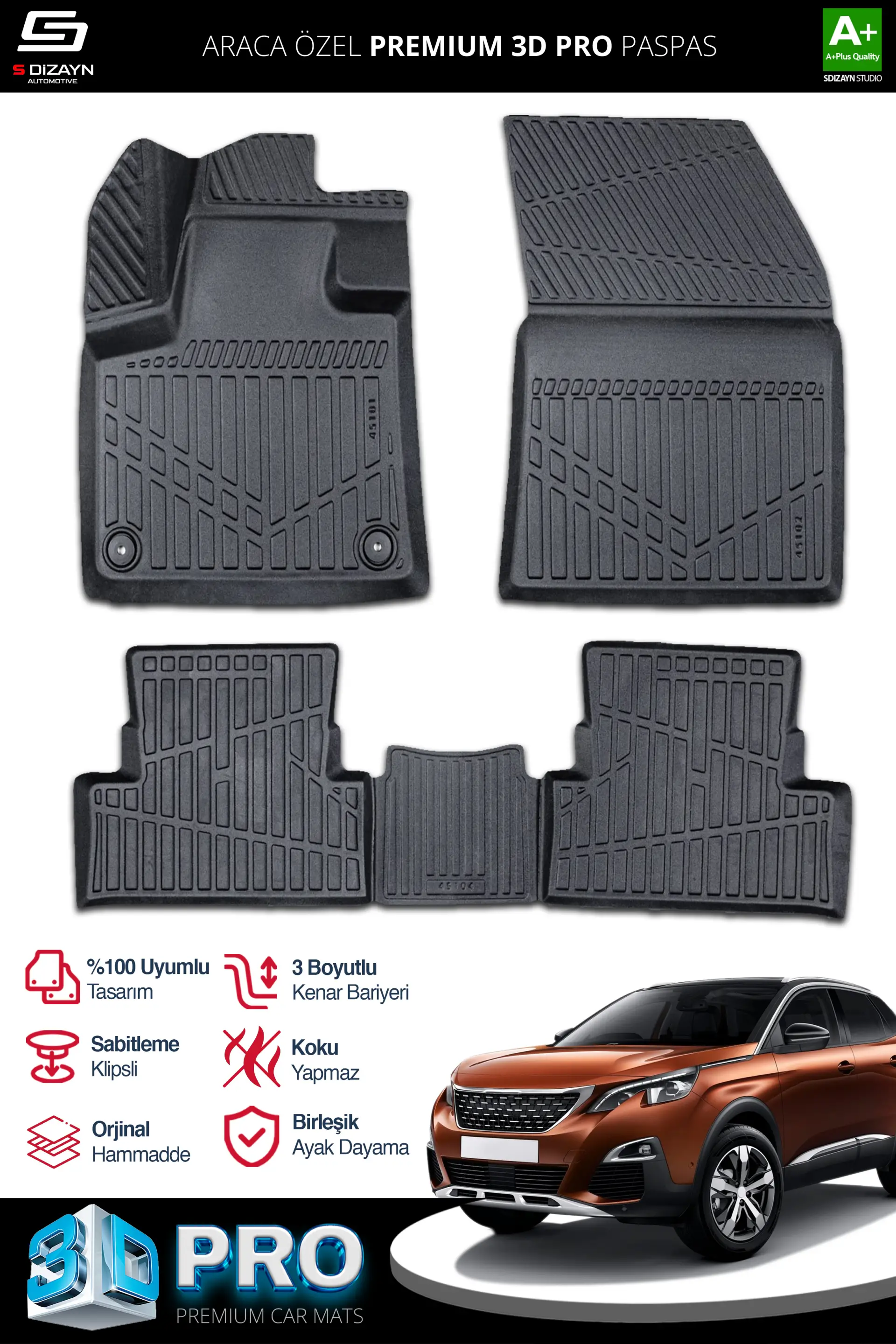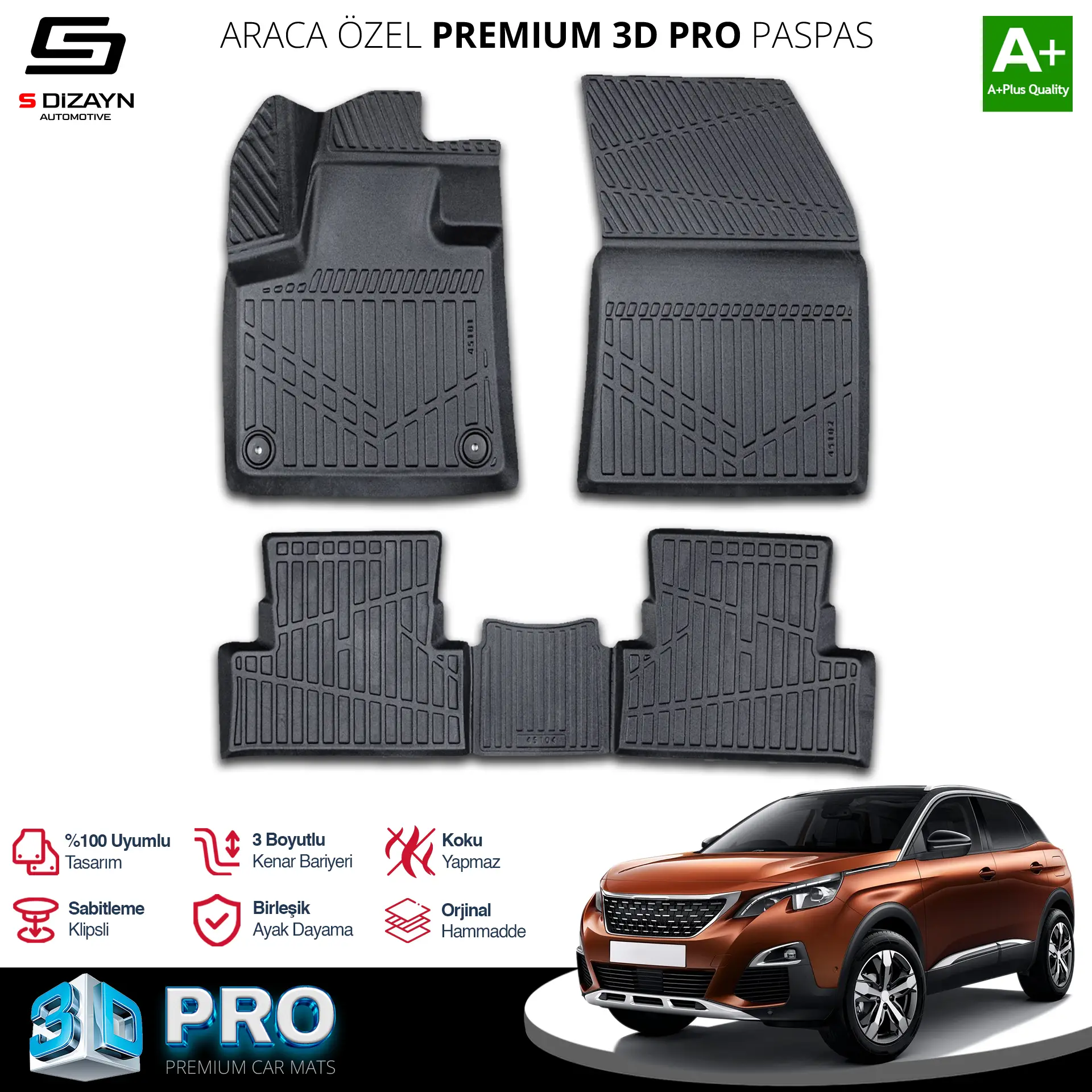 | Etiketler | S-Dizayn Peugeot 3008 3D Pro Havuzlu Paspas 2016-2023 A+ Kalite |
