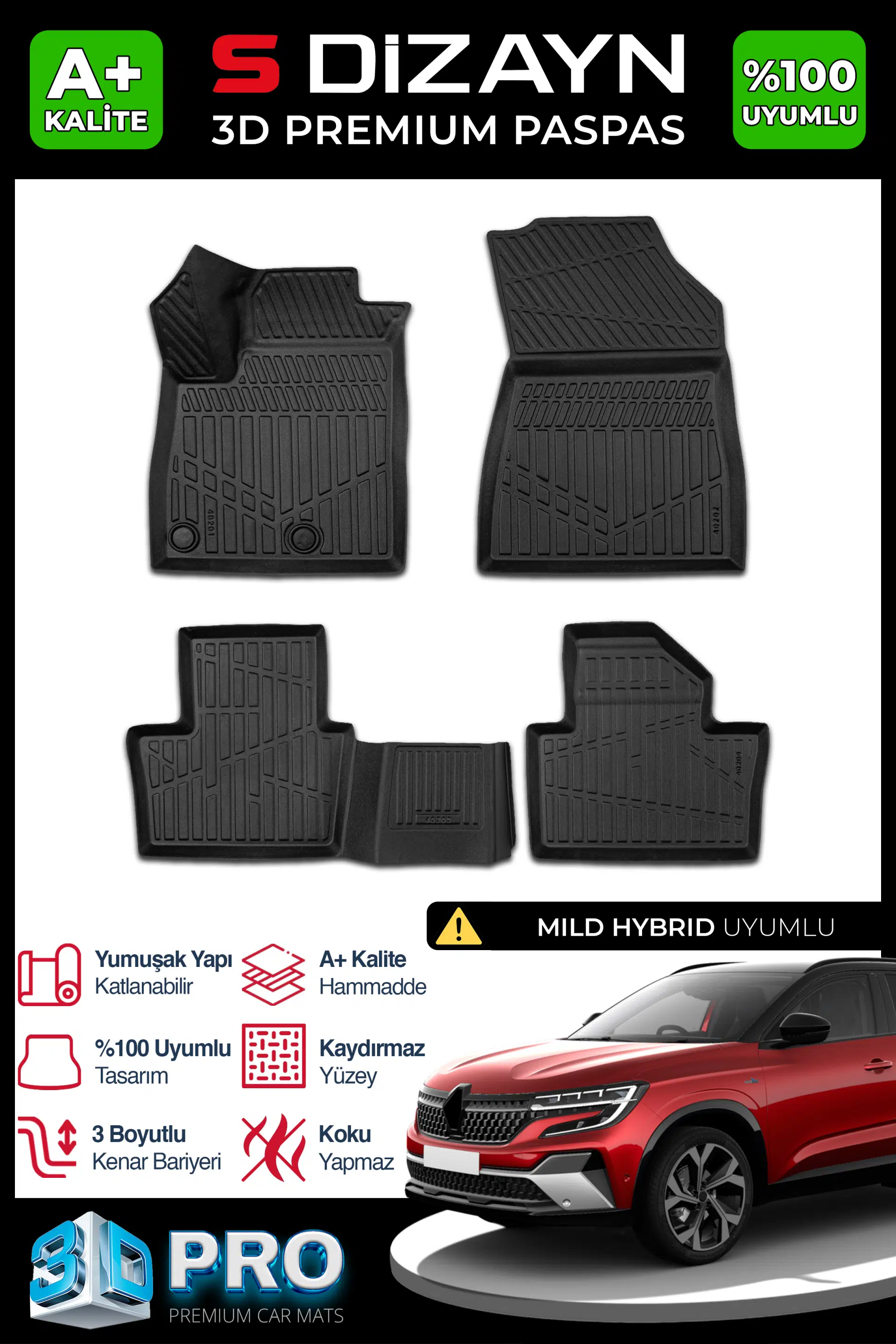 | Etiketler | S-Dizayn Renault Austral Mild Hybrid 3D Pro Havuzlu Paspas 2023 Üzeri A+ Kalite |