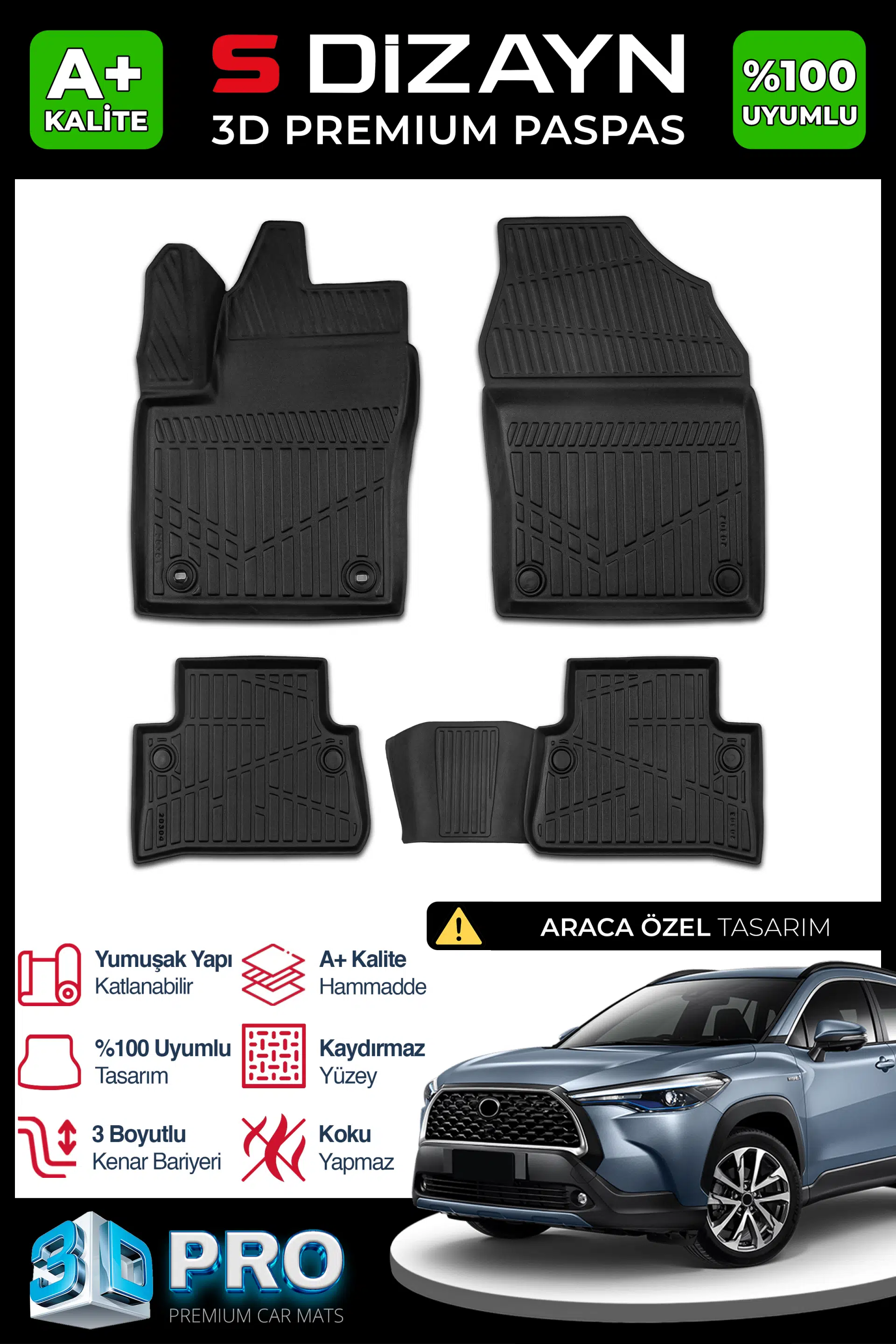 | Etiketler | S-Dizayn Toyota Corolla Cross 3D Pro Havuzlu Paspas 2022 Üzeri A+ Kalite |