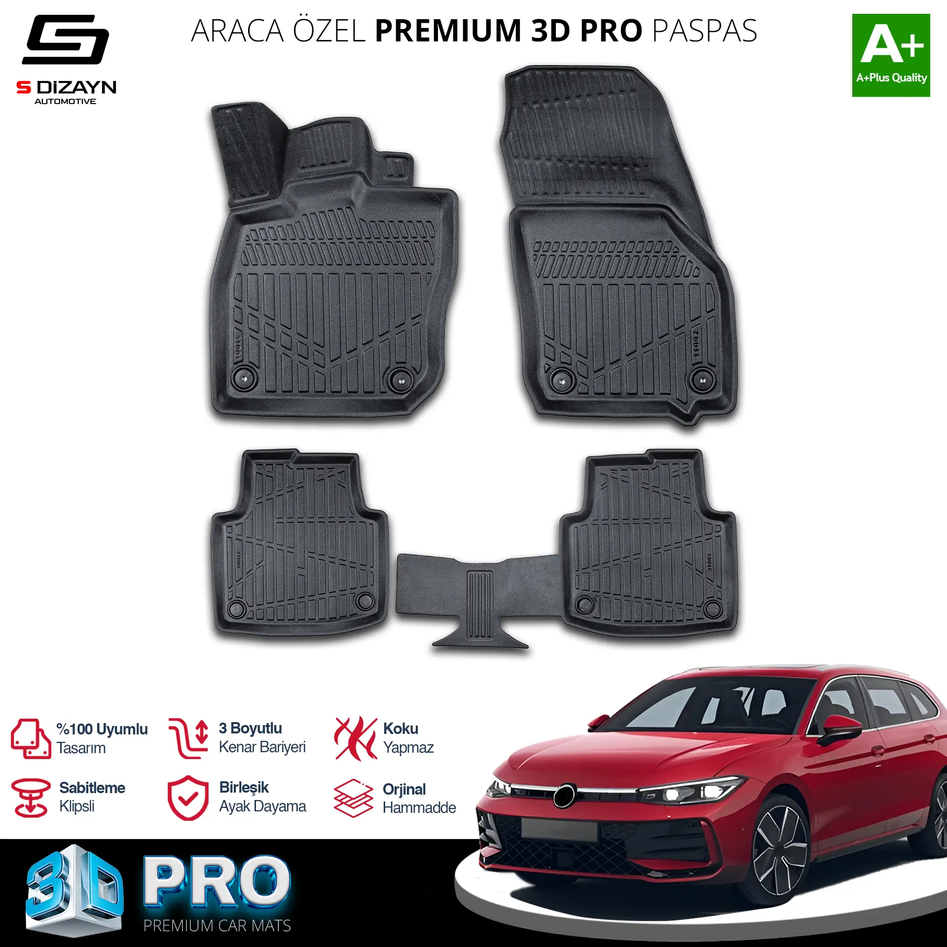 | Etiketler | S-Dizayn VW Passat B9 3D Pro Havuzlu Paspas 2023 Üzeri A+ Kalite |