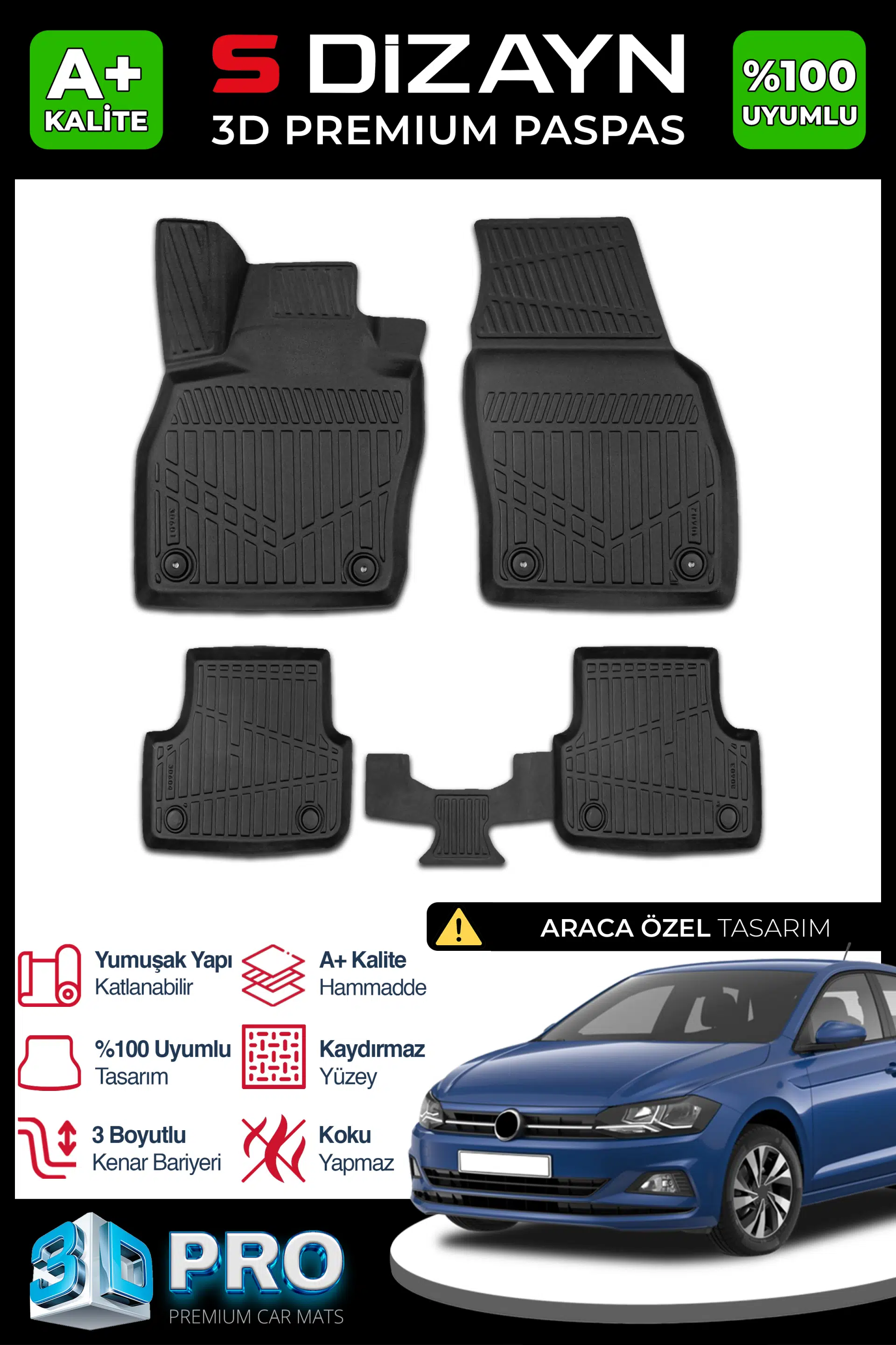 | Etiketler | S-Dizayn VW Polo 3D Pro Havuzlu Paspas 2017-2021 A+ Kalite |